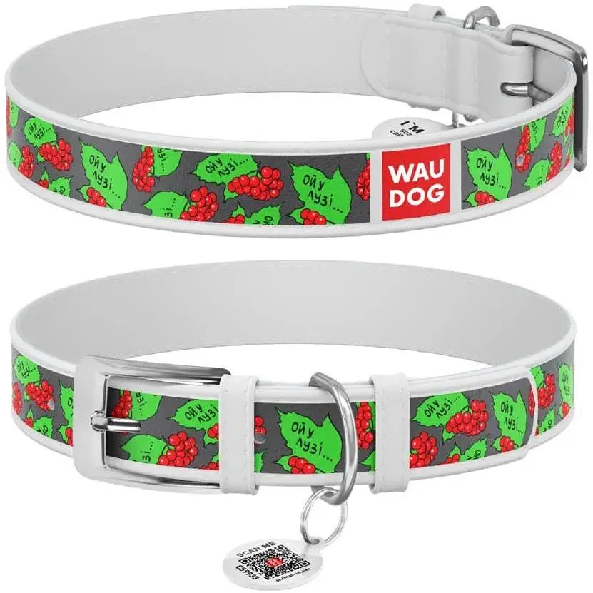 Нашийник для собак Waudog Design шкіряний з QR паспортом малюнок Калина L - фото 1