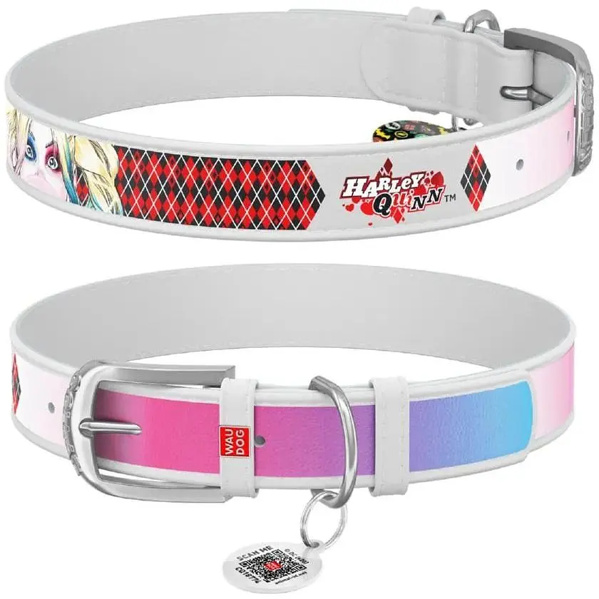 Нашийник для собак Waudog Design шкіряний з QR паспортом, малюнок Харлі Квін, XL, Ш 35 мм, Дов 44-58 см (4823089322919) - фото 1