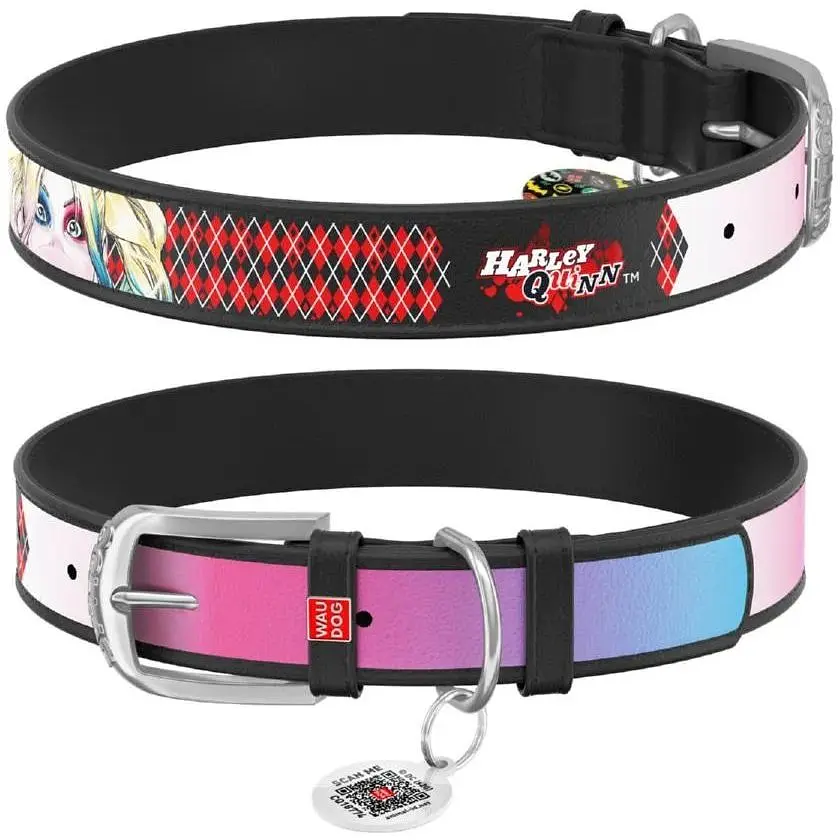 Нашийник для собак Waudog Design шкіряний з QR паспортом, малюнок Харлі Квін, XS, Ш 12 мм, Дов 20-28 см (4823089323558) - фото 1