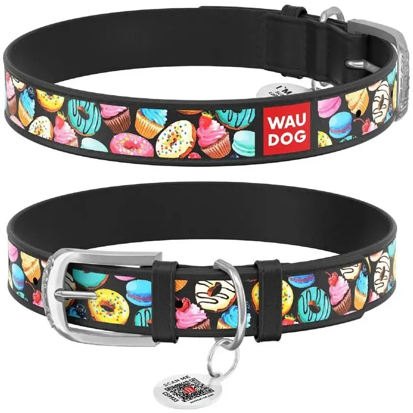 Нашийник для собак Waudog Design шкіряний з QR паспортом, малюнок Пончики, S, Ш 15 мм, Дов 27-36 см (4823089312781) - фото 1