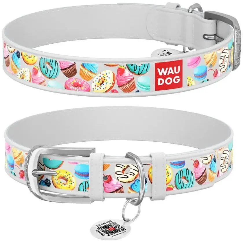 Нашийник для собак Waudog Design шкіряний з QR паспортом, малюнок Пончики, XL, Ш 35 мм, Дов 46-60 см - фото 1