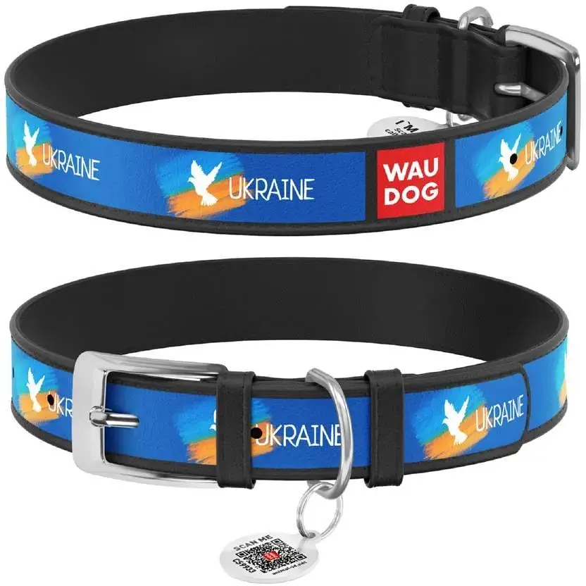 Нашийник для собак Waudog Design шкіряний з QR паспортом малюнок Прапор XS