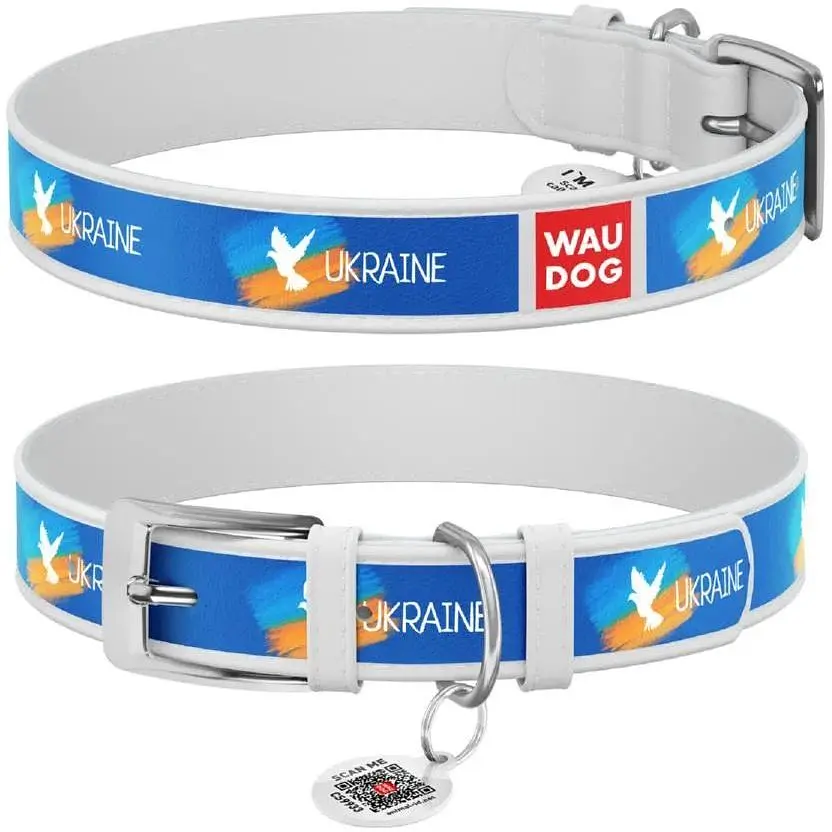 Нашийник для собак Waudog Design шкіряний з QR паспортом малюнок Прапор XXS