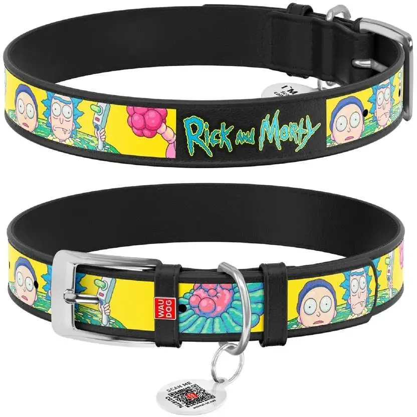 Нашийник для собак Waudog Design шкіряний з QR паспортом малюнок Рік та Морті 1 XХS - фото 1