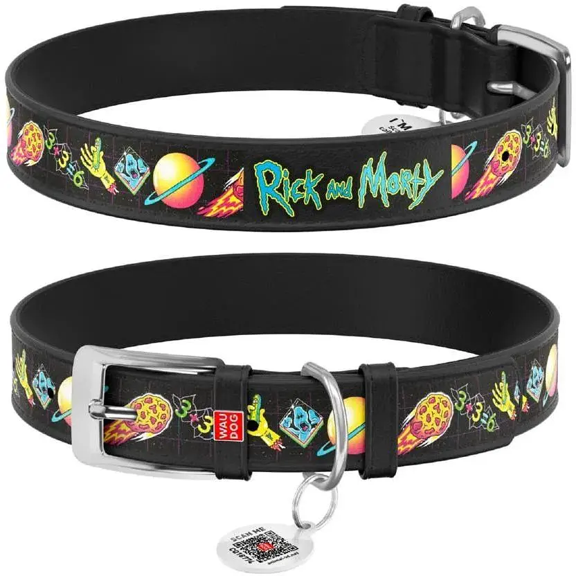 Нашийник для собак Waudog Design шкіряний з QR паспортом малюнок Рік та Морті 3 XS - фото 1