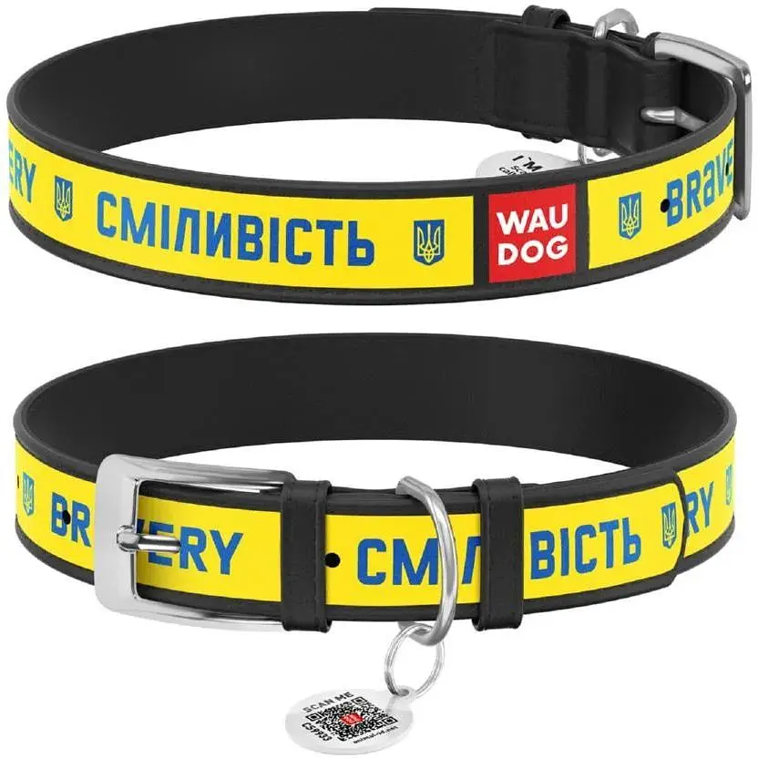Нашийник для собак Waudog Design шкіряний з QR паспортом малюнок Сміливість L (4823089354149) - фото 1