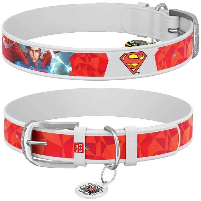 Нашийник для собак Waudog Design шкіряний з QR паспортом, малюнок Супермен1, XS, Ш 12 мм, Дов 18-24 см (4823089322667) - фото 1