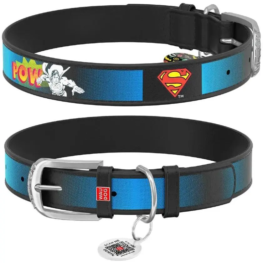 • Нашийник для собак Waudog Design шкіряний з QR паспортом, малюнок Супермен2, L, Ш 25 мм, Дов 37-48 см (4823089323169) - мініатюра 1