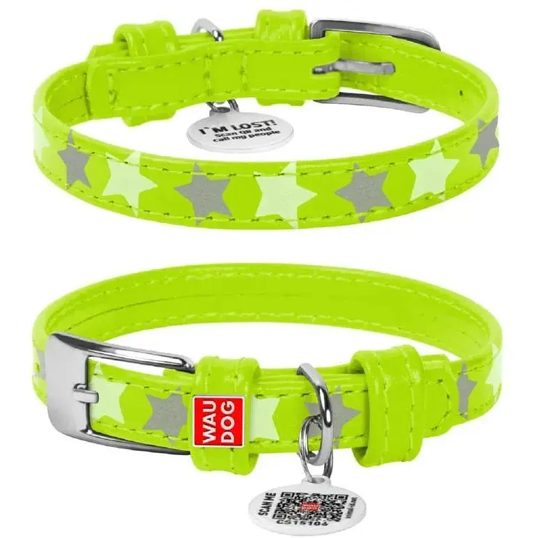 Нашийник для собак Waudog Glamour шкіряний з QR паспортом, візерунок Зірочка, світиться/світловідбивний, XS, Ш 15 мм, Дов 27-36 см (4823089301204)