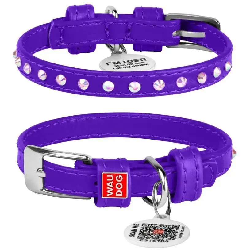 Нашийник для собак Waudog Glamour шкіряний з QR паспортом, з клейовими стразами, XS, Ш 9 мм, Дов 19-25 см (4820082498979) - фото 1