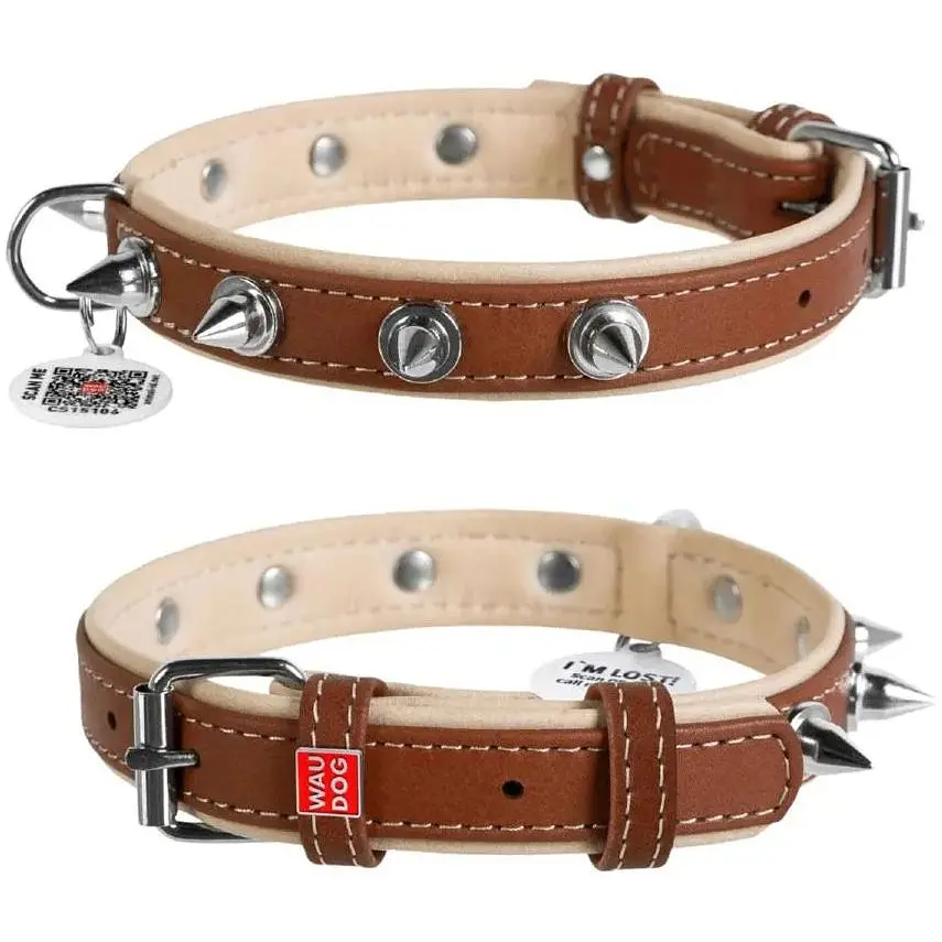 Нашийник для собак Waudog Soft шкіряний з QR паспортом, з шипами, S, Ш 20 мм, Дов 30-39 см (4820152561831) - фото 1