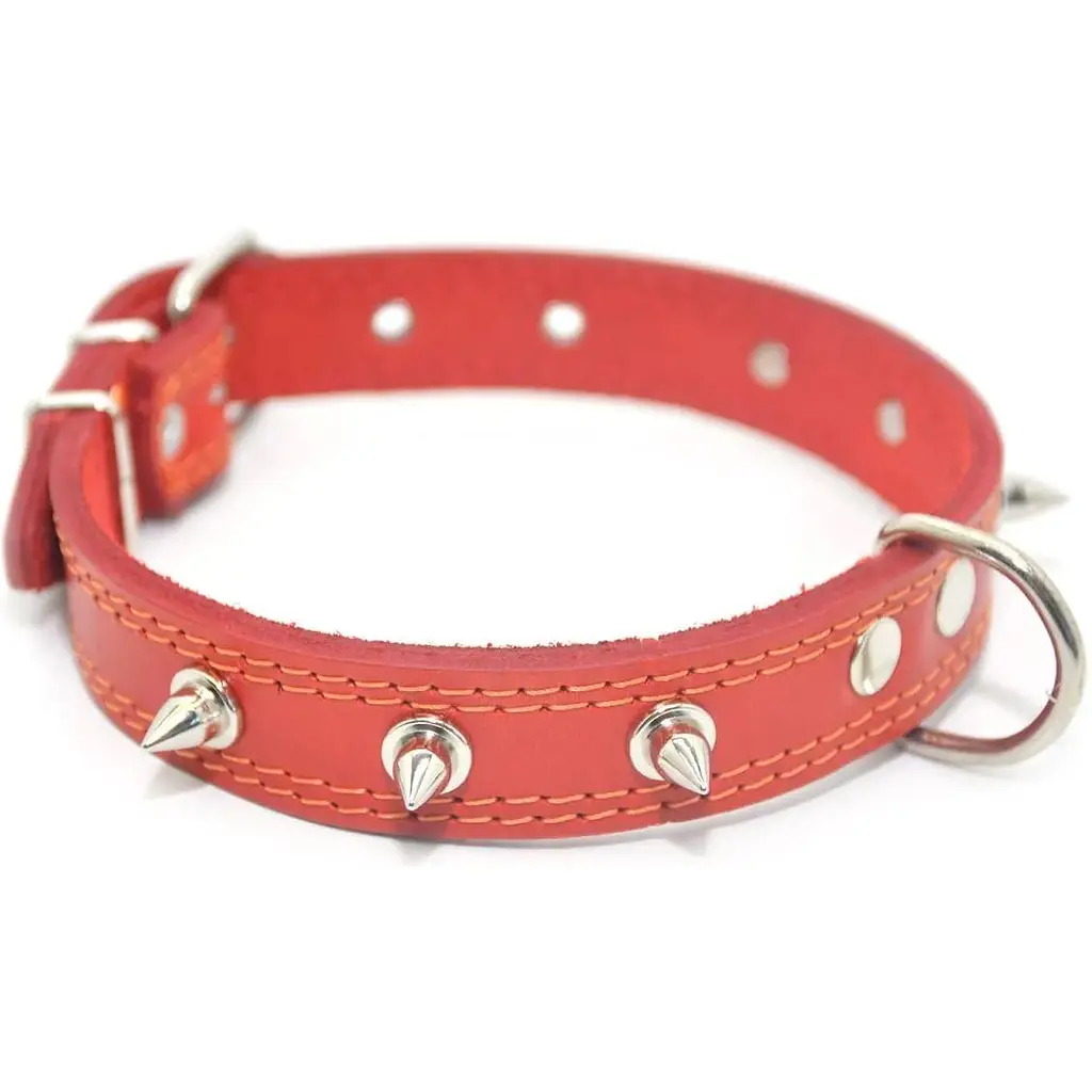 Нашийник для собак Zoo-hunt шкіряний з шипами подвійний червоний ОДШ 3,5/44-55 см