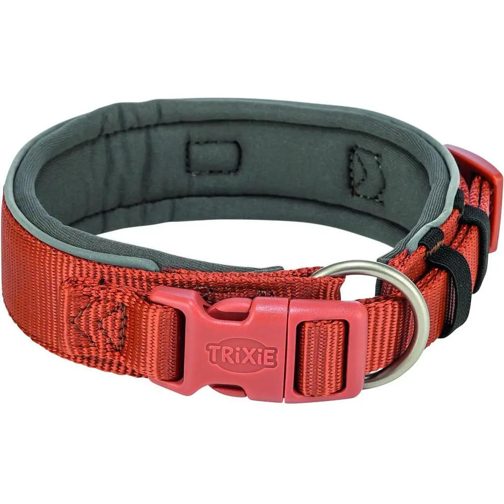 Нашийник Trixie Premium екстраширокий - це високоякісний міцний аксесуар, який забезпечить комфорт і безпеку вашій собаці під час прогулянок. Неопренова підкладка робить його м'яким і зручним для носіння. Нашийник має пряжку із захистом від натягу, яка запобігає випадковому розстібання. Світловідбиваючі елементи нашийника допомагають улюбленцю стати помітним у темряві для водіїв. Нашийник має петлю для кріплення жетона або мигалки, а також можливість кріплення трекера на вузькій застібці.