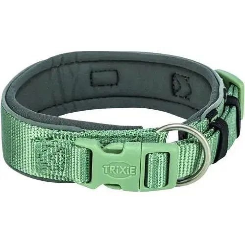 Нашийник Trixie Premium екстраширокий - це високоякісний міцний аксесуар, який забезпечить комфорт і безпеку вашій собаці під час прогулянок. Неопренова підкладка робить його м'яким і зручним для носіння. Нашийник має пряжку із захистом від натягу, яка запобігає випадковому розстібання. Світловідбиваючі елементи нашийника допомагають улюбленцю стати помітним у темряві для водіїв. Нашийник має петлю для кріплення жетона або мигалки, а також можливість кріплення трекера на вузькій застібці.