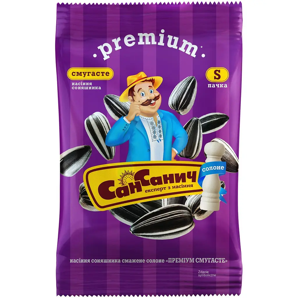 Насіння соняшника Сан Санич Преміум смугасте смажене солоне - це смачний і ароматний снек, призначений для швидкого перекусу чи доповнення до напоїв. Ідеально підходить для вечірок, подорожей чи домашнього відпочинку, створюючи затишну атмосферу завдяки унікальному смаку преміального насіння.