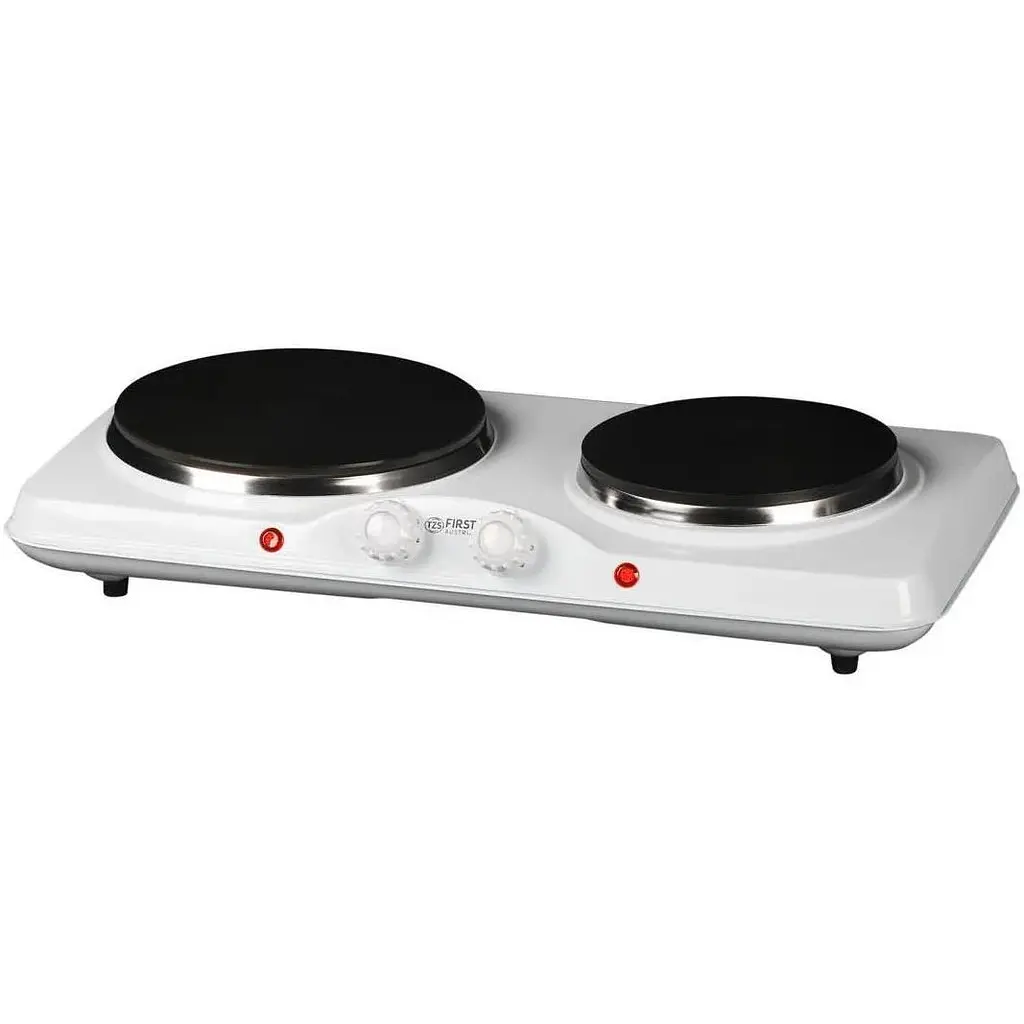 FIRST FA-5083-4 - настільна електрична плита з двома конфорками, потужністю 2500 Вт і регульованим термостатом. Плита призначена для приготування різних страв, сумісна з посудом із металу, кераміки, емалі та інших матеріалів.