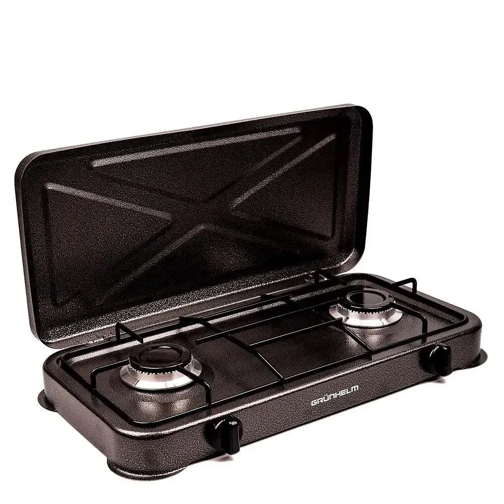 Grunhelm GGP-6012 – це компактна та надійна настільна газова плита з двома конфорками, призначена для використання зі зрідженим газом. Завдяки своїм характеристикам вона ідеально підходить для дач, кемпінгів та інших місць, де потрібне мобільне рішення для приготування їжі.