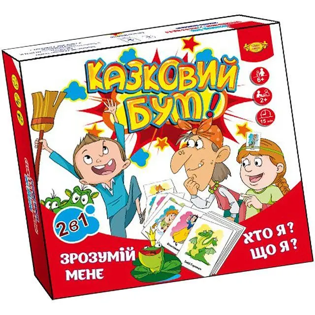 Хто я? Що я? Гравець одягає на голову обруч, у який вставляють картку з картинкою. За допомогою запитань, на які можна відповідати Так або Ні, він відгадує, який казковий персонаж або атрибут зображений на картці. Пісочний годинник відміряє час. Якщо гравець за обумовлений час вгадує, ХТО він або ЩО він, - картку забирає собі. Чим більше карток - тим ближче перемога. Гра розвиває логіку, інтуїцію та кмітливість. Чудова розминка розуму і почуття гумору.