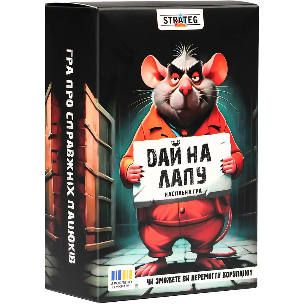 Настільна гра Strateg Дай на лапу – це азартна психологічна стратегія з таємними ролями, де панують блеф, маніпуляції та приховані мотиви. Учасники переносяться до міста Тваринвіль, де спокійне життя опинилося під загрозою через розквіт тіньових схем. Гравці розділяються на дві протиборчі фракції: чесних «Чисторуків» та підступних «Бруднолапів». Це безкомпромісна битва характерів, у якій кожне слово може бути пасткою, а кожен союз – лише тимчасовим прикриттям для досягнення власної мети.