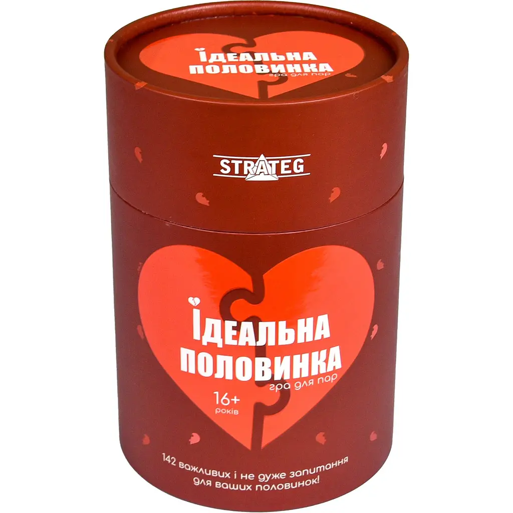 Настільна гра Strateg Ідеальна половинка – це ніжна та глибока розвага для пар, яка допомагає вибудувати щирий діалог і навчитися говорити про важливе легко та без жодної незручності. Основна мета гри полягає у перевірці того, наскільки добре партнери знають одне одного насправді. Усередині набору зібрані запитання, які делікатно відкривають справжні почуття, потаємні думки, амбітні мрії та маленькі секрети, що зазвичай залишаються поза увагою в щоденній метушні.
