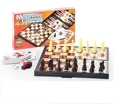 Шахи магніт. 9841A "5в1" - це настільна гра, яку люблять і діти, і дорослі. Настільні ігри рекомендовані психологами для гіперактивних дітлахів, які з зусиллям можуть всидіти на одному місці більше п'яти хвилин. Завдяки такому проведенню часу непосида вчитися бути спокійніше, уважніше, втягується в аналітичний і розумовий процес, розвиває розумові здібності і просторову уяву. Найбільш оптимальний вік для знайомства з дивовижним світом шахів - від чотирьох-п'яти років. У наборі дитина знайде не тільки все необхідне для гри в шахи, а й інші комплекти для настільної гри.