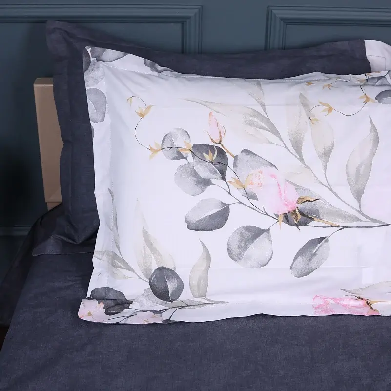 Наволочка MirSon Поплін 00-7 Pink Flowers 50х70 см біло-сіра з рожевим (2200009706684) - фото 8