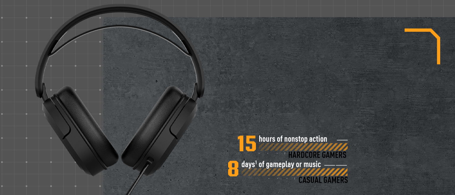 Звичайні користувачі, які надягають гарнітуру на пару годин на день, зможуть використовувати TUF Gaming H1 Wireless без підзаряджання цілий тиждень*, а захоплені геймери гратимуть 15 годин без перерв**.