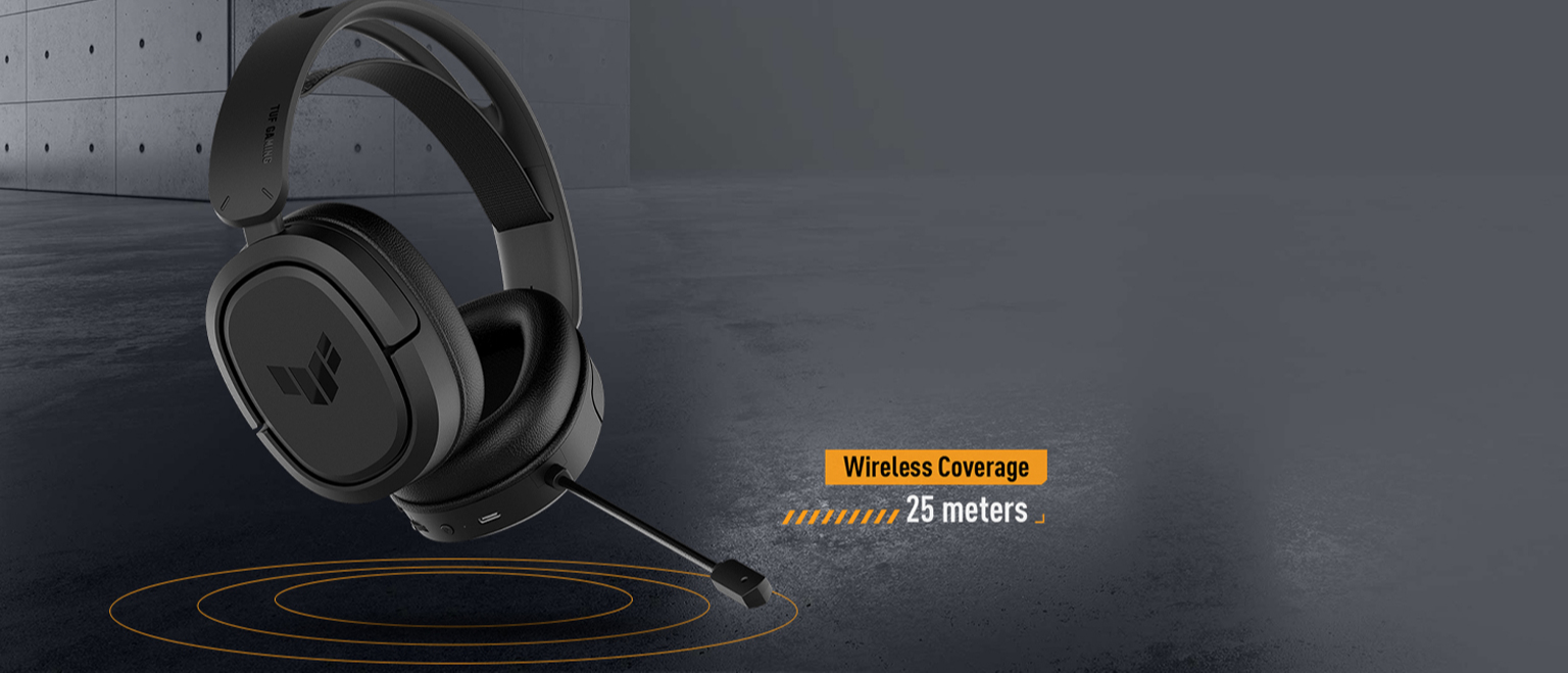 TUF Gaming H1 Wireless використовує бездротовий інтерфейс 2.4 ГГц із двома антенами. Він має нижчу латентність порівняно з широко поширеним Bluetooth, тому будь-який звук передається миттєво. Радіус дії передавача USB-C сягає 25 метрів.
