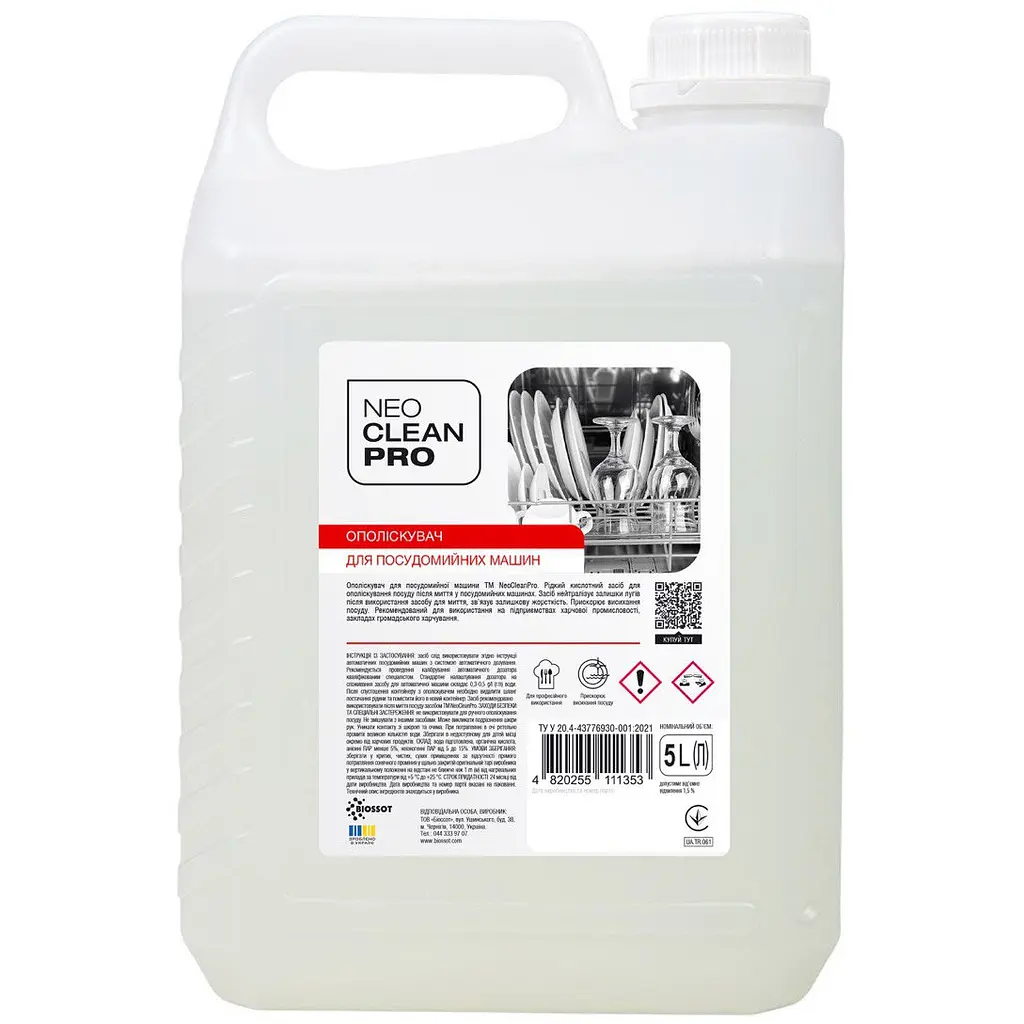 Ополіскувач для посудомийних машин NeoCleanPro 5 л - це рідкий кислотний засіб для ополіскування посуду після миття у посудомийних машинах. Засіб нейтралізує залишки лугів після використання засобу для миття, зв’язує залишкову жорсткість. Прискорює висихання посуду. Рекомендований для використання у комплексі з рідким засобом для посудомийних машин ТМ «NeoCleanPro» для отримання найкращого результату.
