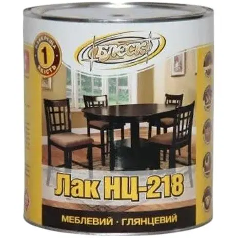 Лак Блєск НЦ-218 призначений для оброблення меблів та інших виробів із деревини, експлуатованих всередині приміщення з подальшим поліруванням або без нього.