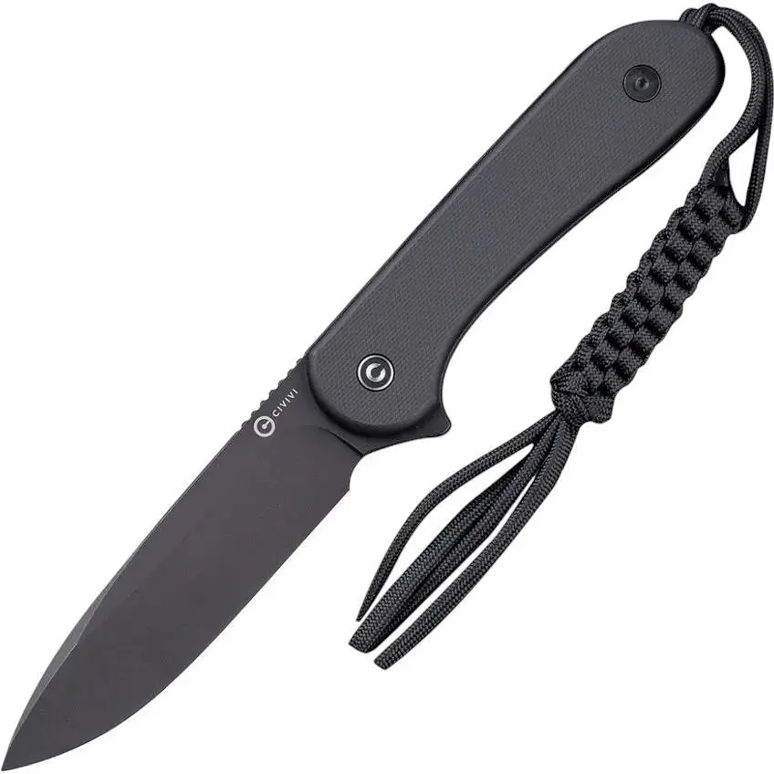 Популярність ножа Civivi Elementum надихнула бренд на створення аналога з фіксованим клинком. Він має ідентичний дизайн, розроблений з упором на зручність та універсальність, тому модель можна використовувати не лише в тактичних цілях, а й під час активного відпочинку.Основну увагу приковує до себе клинок drop point кольору вороного крила. Матеріал леза - інструментальна сталь D2 з високим вмістом хрому, тому марка не боїться тривалого впливу води та протистоїть окисленню у разі контакту з хімічними речовинами. Обробка клинка stonewash усуває блиск металу, матуючи дрібні подряпини, які можуть з'явитися під час роботи з інструментом.Повна довжина ножа сягає 215.3 мм, серед яких 101 мм припадає на клинок. У конструкції передбачено рифлений упор під великий палець та захисна гарда.Плашки на руківʼї виготовлені з шорсткого склотекстоліту G10. Це гідрофобний композит, який зберігає форму у разі температурних коливань і не тріскається при ударних навантаженнях. У хвості руківʼя закріплено паракорд. Вага моделі дорівнює 138.5 грамам.До набору з ножем входять піхви з Т-подібним затискачем, що спроєктований ножовим майстром Бобом Терзуола. Піхви виготовлені з кайдекса - акрил-полівінілхлоридного матеріалу з високою термопластичністю та здатністю відштовхувати вологу. У піхвах передбачено наскрізний отвір для зливу надлишку води.Характеристики:тактичний ніж із фіксованим клинком;колір - чорний;матеріал клинка - сталь D2;твердість клинка - 58-60 HRC;тип заточування - прямий;обробка клинка - stonewash;матеріал руківʼя - склотекстоліт G10;повна довжина ножа - 215.3 мм;довжина клинка - 101 мм;товщина клинка - 3.5 мм;довжина руківʼя - 114.3 мм;товщина руківʼя - 12.5 мм;вага - 138.5 г;до комплекту входить паракорд і піхви з кайдекса.