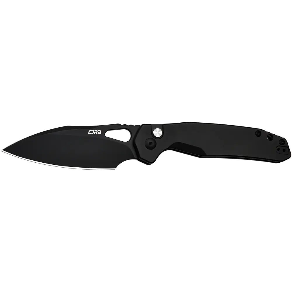 CJRB Frack - нова лінійка EDC ножів в асортименті концерну. Модель являє собою повнорозмірний, робочий інструмент для виконання різних завдань. Клинок профілю Wharncliffe виготовлений зі сталі AR-RPM9 (Artisan-Rare Powdered Material 9 Element Steel). Ексклюзивна сталь має однорідну структуру, яка дає змогу зберігати ріжучу кромку гострою впродовж тривалого періоду, проста в редагуванні та чудово витримує навантаження. Вихід клинка, фіксація у відкритому вигляді та закриття ножа відбувається завдяки замку Button Lock. Також, як альтернативний спосіб відкривання, на клинку розміщений підпальцевий отвір. Покриття клинка і накладок на руків'ї можуть відрізнятися залежно від моделі. Клинок може мати обробку Stonewash або захисне, чорне PVD (Physical Vapor Deposition). Накладки виготовлені з нержавіючої сталі. На торці розміщена двостороння кишенькова кліпса.