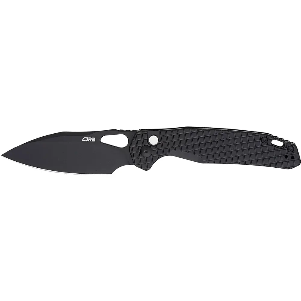 CJRB Frack - нова лінійка EDC ножів в асортименті концерну. Модель являє собою повнорозмірний, робочий інструмент для виконання різних завдань. Клинок профілю Wharncliffe виготовлений зі сталі AR-RPM9 (Artisan-Rare Powdered Material 9 Element Steel). Ексклюзивна сталь має однорідну структуру, яка дає змогу зберігати ріжучу кромку гострою впродовж тривалого періоду, проста в редагуванні та чудово витримує навантаження. Вихід клинка, фіксація у відкритому вигляді та закриття ножа відбувається завдяки замку Button Lock. Також, як альтернативний спосіб відкривання, на клинку розміщений підпальцевий отвір. Покриття клинка і накладок на руків'ї можуть відрізнятися залежно від моделі. Клинок може мати обробку Stonewash або захисне, чорне PVD (Physical Vapor Deposition). Накладки виготовлені з нержавіючої сталі. На торці розміщена двостороння кишенькова кліпса.