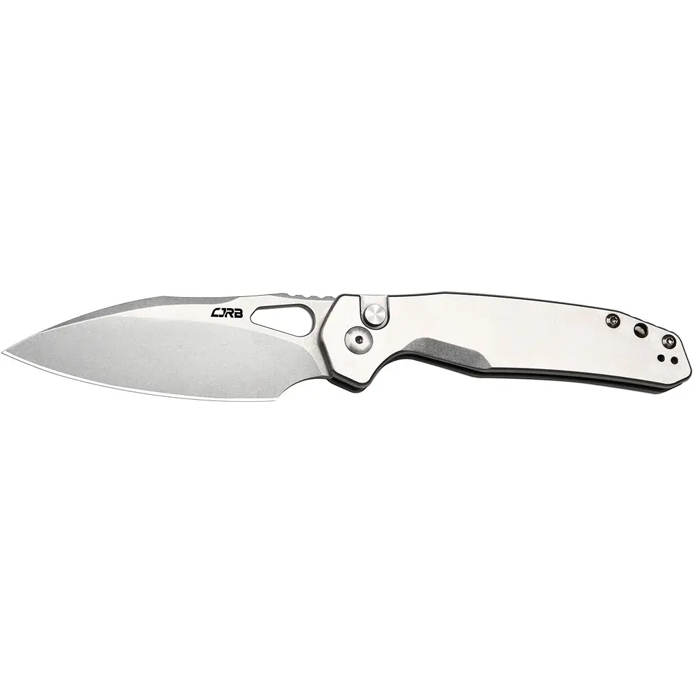 CJRB Frack - нова лінійка EDC ножів в асортименті концерну. Модель являє собою повнорозмірний, робочий інструмент для виконання різних завдань. Клинок профілю Wharncliffe виготовлений зі сталі AR-RPM9 (Artisan-Rare Powdered Material 9 Element Steel). Ексклюзивна сталь має однорідну структуру, яка дає змогу зберігати ріжучу кромку гострою впродовж тривалого періоду, проста в редагуванні та чудово витримує навантаження. Вихід клинка, фіксація у відкритому вигляді та закриття ножа відбувається завдяки замку Button Lock. Також, як альтернативний спосіб відкривання, на клинку розміщений підпальцевий отвір. Покриття клинка і накладок на руків'ї можуть відрізнятися залежно від моделі. Клинок може мати обробку Stonewash або захисне, чорне PVD (Physical Vapor Deposition). Накладки виготовлені з нержавіючої сталі. На торці розміщена двостороння кишенькова кліпса.