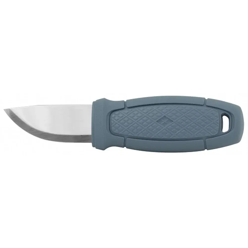 Morakniv Eldris - нова компактна і універсальна модель в лінійці туристичних ножів Morakniv Outdoor. Завдяки невеликим габаритним розмірам і малій вазі, ніж Eldris не займе багато місця і може бути розміщений в кишені куртки, штанів, рюкзака або сумки. Клинок довжиною 56 мм має "скандинавські спуски", оброблений методами "стоунвош" і сатинування. Виведена кромка на обуху ножа призначена для спрощення висікання іскор з кресала. Рукоять виготовлена з міцних полімерів. Для запобігання ковзання та підвищення комфорту в утриманні, рукоять має прогумоване покриття, а також текстуровану вставку всередині. Отвір у тильній частині рукояті передбачено для кріплення темляка. Morakniv Eldris доступний у різних варіантах забарвлення рукояті та піхов. У комплекті базової версії присутні пластикові піхви. Модифікація Morakniv Eldris Neck Knife має розширену комплектацію: пластикові піхви; вставка зі шкіри з клапаном, що запобігає випадковому витягу; кресало, темляк з паракорду для носіння на шиї. Нові моделі Eldris позбулися комбінованої заточки, зберігши скандинавські спуски. Крім того, клинок тепер полірований. Сталь клинка збереглася, як і в перших моделях - 12С27. Дизайн руків'я залишився без змін і виконаний з посиленого скловолокном нейлону. Але колірна палітра тепер в пастельних і приємних тонах. Увага! Для уникнення появи плям на поверхні клинка, рекомендуємо насухо протирати клинок після контакту з вологим середовищем. Тим не менш, поява плям є хімічною реакцією сталі та не є браком чи гарантійним випадком. Компанія Morakniv використовує стандарт Steel Grade Mora (SGM), що визначає тип сталі, використовуваної в клинках ножів, країну походження і обробку, якій вона піддається в процесі виробництва. Коди SGM: - SGM S-ASE101 - SGM S-ASE111 - SGM S-BSE101 - SGM S-BSE111 - SGM S-CSE101 - SGM S-CSE111 - SGM C-DDE101 - SGM LC-EFR 101 - SGM B-FSE101 - SGM C-GDE000 Як читати? Тип сталі: S = (Stainless Steel) Нержавіюча сталь C = (Carbon Steel) Вуглецева сталь LC = (Laminated Carbon steel) Ламінована вуглецева сталь B = (Boron steel) Борована сталь Сплав сталі: A = 12C27 AlleimaB = 14C28N AlleimaC = 10C28Mo2 AlleimaD = C100S C. D. Wälzholz GmbHE = S235/100CR6 BonpertuisF = Boron 27Cr SSABG = Spring C75 QT C. D. Wälzholz GmbH Країна-виробник:SE = Швеція DE = Німеччина FR = Франція Перша цифра: Загартовування: 1 = Так / 0 = Ні Друга цифра: Кріообробка 1 = Так / 0 = Ні Третя цифра: Відпалювання : 1 = Так / 0 = Ні