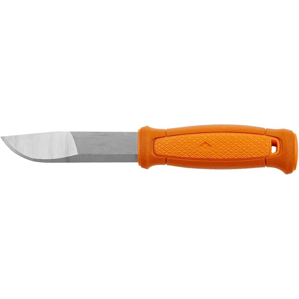 Morakniv Kansbol - продовження лінійки популярних універсальних ножів Outdoor 2000 з оновленим сучасним дизайном рукояті. Клинок завдовжки 109 мм оброблений методами "стоунвош" і сатинування, він оптимально підійде для вирішення більшості побутових, туристичних і мисливських завдань. Рукоять виготовлена з міцних полімерів. Для запобігання ковзання і підвищення комфорту в утриманні, рукоять має прогумоване покриття, а також текстуровану вставку всередині. Отвір у тильній частині рукояті передбачено для кріплення темляка. У комплекті пластикові піхви з поясним кріпленням. Ніж комплектується набором аксесуарів Morakniv Survival Kit. Morakniv Survival Kit являє собою набір для виживання, яким слід обзавестися кожному мандрівникові. Набір складається з алмазного точила, кресала та паракорду.