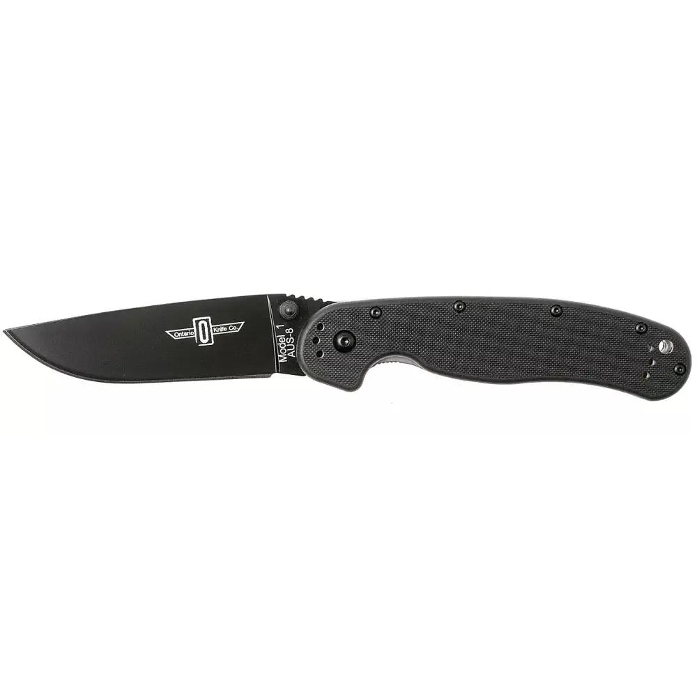 Ontario RAT-1 - найвідоміший бестселер бренду Ontario Knives. Цей надійний ніж є ідеальним вибором для тих, хто шукає функціональний, бюджетний інструмент для EDC та туризму. Клинок профілю Drop Point виготовлений з інструментальної сталі D2 або класичної для OKC AUS-8. Клинок приводиться в робоче положення за допомогою двостороннього шпеника, а фіксується надійним замком Liner Lock. Насічки на обуху забезпечують додатковий упор та контроль клинка при роботі. Ергономічне руків’я з виїмками під пальці, виготовлене із посиленого нейлону FRN - легкого, а головне міцного матеріалу. Також в серії наявні моделі з накладками з вуглецевого волокна. На кінці передбачено отвір під темляк та чотирьохпозиційну кліпсу, що дозволяє адаптувати ніж під ваш стиль носіння. В лінійку також входить більш преміальна модель з порошкової сталі S35VN та накладками руків'я зі склотекстоліту G10. Залежно від партії, логотип на клинку може відрізнятись.