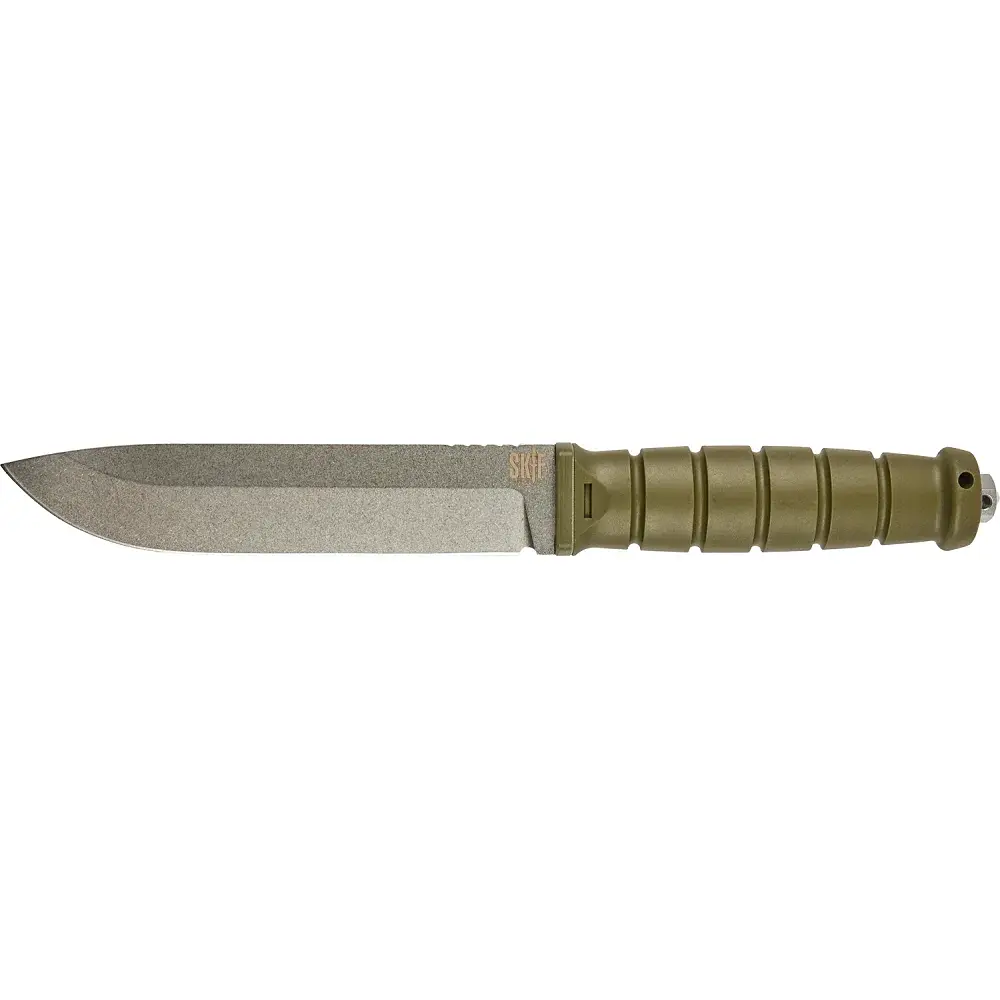 Skif Knives Predator 2.0 - продовження фіксованих тактичних ножів у Skif Knives та нова еволюційна гілка моделі Predator. Модель Predator 2.0 відрізняється універсальним дизайном і підійде як для військових та правоохоронців, так і для кемпінгу чи недовготривалих походів. Головна відмінна риса моделі Predator 2.0 - її розробили безпосередньо ножові фахівці та дизайнери ІБІС, завдяки чому вона враховує всі потреби майбутнього користувача, від бушкрафтера до військового. Беручи за основу класичний Predator, наші фахівці вдихнули нове життя в модель, удосконаливши використовувані матеріали, ергономіку та зовнішній вигляд. Над розробкою профіля клинка працювали, в тому числі, Андрій Шарп та Григорій Соя, завдяки чому ніж підійде для екстремальних умов експлуатації! Прислухаючись до потреб споживача та порад справжніх фанатів бренду, команда ІБІС, починаючи від 3D моделі і закінчуючи робочим прототипом, приділяла граничну увагу кожній деталі. Клинок профілю Drop Point, зі спусками 1\3 від обуху, виготовлений із інструментальної сталі D2 і має гартування 60 HRC. Дана марка сталі стійка до екстремального використання, чудово витримує згинання та динамічні удари. Залежно від обраної моделі, клинок може мати фінішну обробку Black Stonewash або Stonewash, яка маскує подряпини, які можуть виникнути під час експлуатації. Для більш контрольованого силового різу на обуху розміщений ряд глибоких насічок для упору великим пальцем. Внутрішня конструкція моделі Predator 2.0 поєднує якості схеми фулл-танг і всадної конструкції, що значно підвищує його стійкість до силових навантажень, в тому числі і поперечних. Руків’я виконане із термопластичної резини TPR. Матеріал відрізняється легкістю, гнучкістю та стійкістю до зовнішніх факторів, таких як перепади температур та хімічних речовин. Матеріал також має нековзку поверхню, що в поєднанні із ергономічною формою та насічками гарантує надійний хват навіть у вологому середовищі. На торці розміщений потужний склобій з отвором під темляк. В комплекті йдуть міцні піхви із пластику із двома варіантами кріплення: на ремінь або систему Molle.