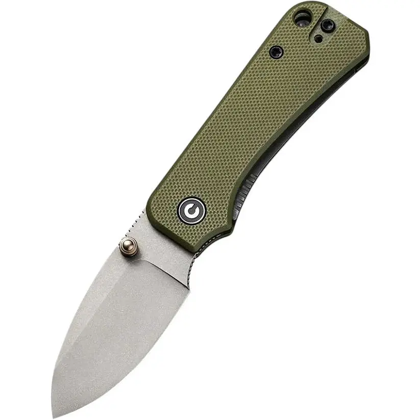 Ніж Civivi Baby Banter - компактний EDC інструмент, розроблений американським дизайнером Беном Петерсеном. Ця модель є зменшеною копією повноформатного аналога Civivi Banter, яка адаптована під повсякденне носіння у кишені в межах міста.Складана конструкція складається з короткого клинка довжиною 59.4 мм та руківʼя, товщина якого не перевищує 10.3 мм. Матеріал клинка - високовуглецева сталь Nitro-V. Метал включає велику кількість ванадію та азоту, що підвищує стійкість до корозії. Поверхня сталі відрізняється матовістю завдяки обробці gray stonewash, в результаті якої усувається металічний блиск, а подряпини та відбитки пальців стають менш видимими.Клинок із прямим заточуванням розкривається за допомогою шпеника, який виготовлений з титану 6AL4V. Фіксувальний механізм - стандартний замок liner lock, є керамічний кульковальник. Додатковий комфорт експлуатації забезпечують рифлений упор під палець на обуху та виїмка під вказівний палець, що захищає від зісковзування руки на лезо.Склотекстолітові плашки на руківʼї не тріскаються у разі удару, не змінюють колір та форму під впливом сонячних променів, олій, кислот. Краї спеціально закруглені, щоб руківʼя не давило долоню. У хвості конструкції є двопозиційний затискач з нержавіючої сталі та широкий отвір для темляка.Модель важить лише 56.5 грамів і має довжину 79.3 мм у складеному положенні.Характеристики:кишеньковий EDC ніж, зменшений варіант моделі Civivi Banter;матеріал клинка - високовуглецева сталь Nitro-V;твердість сталі - 59-61 HRC;тип заточування - прямий;обробка клинка за методом gray stonewash;замок liner lock;відкривання за допомогою шпеника з титану 6AL4V;матеріал руківʼя - склотекстоліт G10;довжина ножа у розкритому вигляді - 138.7 мм;довжина клинка - 59.4 мм;товщина клинка - 2.3 мм;довжина у складеному положенні - 79.3 мм;товщина руківʼя - 10.3 мм;вага - 56.5 г;є сталева кліпса.