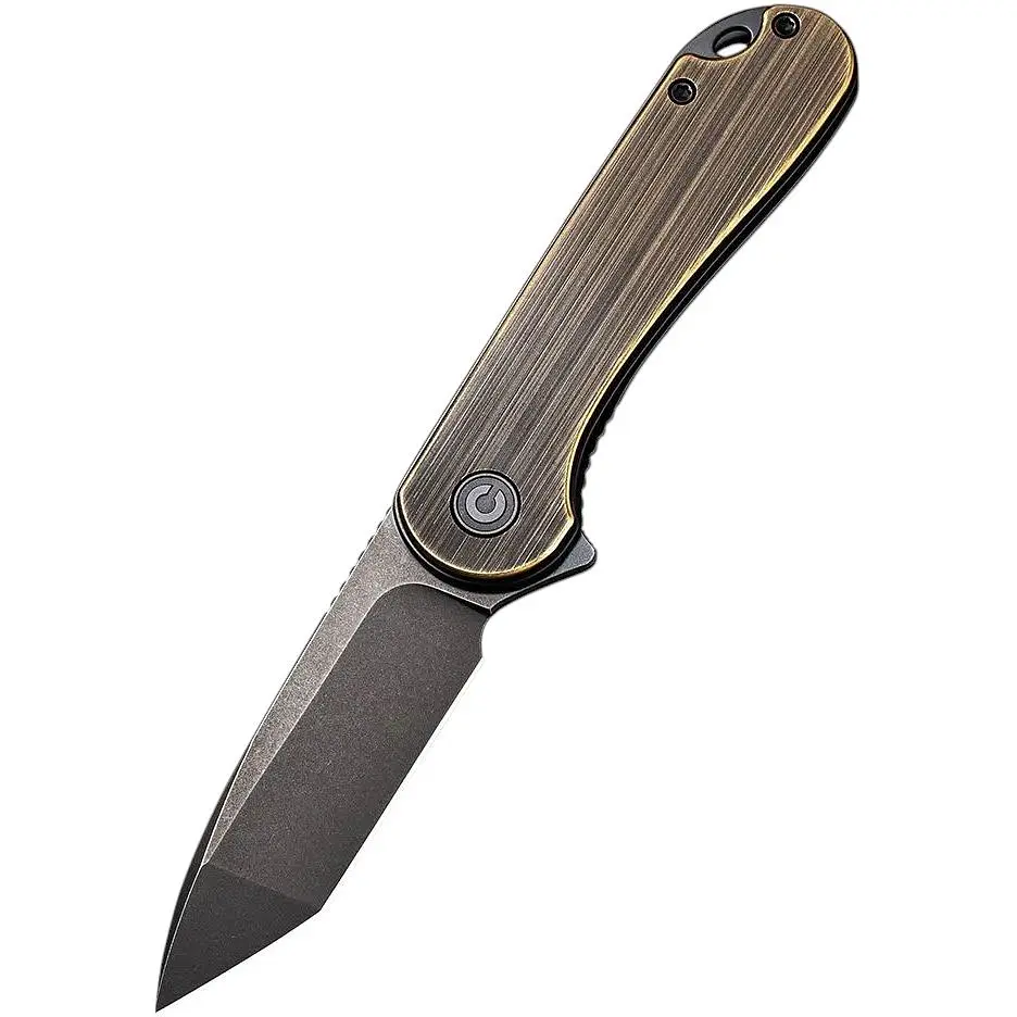 Civivi Elementum C907T-AНіж C907T - це модель з лезом "Амертанто". Ця форма відрізняється від японського танто досить гострим кутом сходження ріжучих кромок. Таким чином вдається забезпечити акцентоване розрізання. Виконане лезо з інструментальної сталі D2. Це "напів нержавіюча сталь" з малим вмістом хрому, тому не відноситься до корозійно-стійкої сталі, потрібен хоч мінімальний догляд. Завдяки високому вмісту вуглецю сталь гарно ріже, характеризується високою твердістю та в'язкістю, також утримує заточування навіть після серйозних навантаженнях.Фінішне покриття леза - BlackWash, виглядає як штучно зістарене покриття чорного кольору. Чорні мідні лусочки з ручним поліруванням надають ножу чудового естетичного вигляду. Це також дозволяє приховати дрібні подряпини, які можуть з’явитися роботи.Ручка з плавними формами, вона зручна під будь-який хват. Лайнери скелетизовані, що дозволяє зменшити вагу, вони виступають за межі накладок. Це досить цікаве дизайнерське рішення. Накладки не піддаються окисленню, бо виготовлені з латуні - сплаву міді, олова і цинку. Це надає ручці міцності, а також підкреслює і особливість ножа. Кліпса глибокої посадки дозволяє повністю приховати ніж у кишені. Вага такого ножа складає 132 г. Він досить легкий і компактний, його можна розмістити в похідному рюкзаку чи сумці.Особливості:лезо з інструментальної сталі Satin D2;є відкривач язичка фліпер і шарикопідшипник;чорна ручка з латуні зі зручним замком;кліпса для комфортного носіння.
