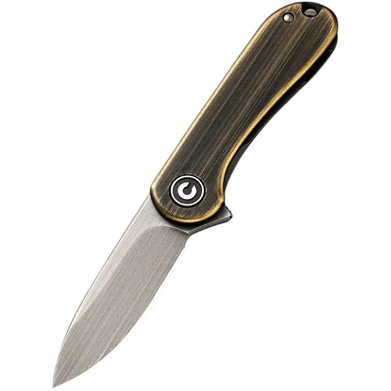 Модель C18062Q-1 - це зменшена версія ножа Civivi Elementum, одного з бестселерів бренду. Інструмент підходить для повсякденного носіння в кишені одягу або як брелока на сумці, коли немає можливості взяти з собою повноформатний аналог.Клинок із марки Sandvik 14C28N має пряме заточування. Це сталь шведського виробництва, що містить близько 14% хрому та 0.62% вуглецю, які наділяють метал стійкістю до корозії та твердістю 58-60 HRC. Поверхня сталі вручну оброблена методом hand rubbed, внаслідок чого на поверхні утворилися горизонтальні смуги, що усувають металічний блиск.Товщина леза дорівнює 2.2 мм. Воно розкривається за допомогою сталевого плавця та утримується у відкритому положенні завдяки пружній пластині замку frame lock. Кульковальник забезпечує плавний хід клинка.У руківʼї поєднуються два матеріали: з одного боку це нержавіюча сталь, з іншого - латунь, що є окрасою дизайну. У хвості зроблено круглий отвір для темляка. Кліпса у цій моделі відсутня.Повна довжина інструменту складає 110 мм. Коли клинок ховається в руківʼя, це значення зменшується до 63.5 мм. Ніж важить лише 40.3 г, тому практично не відчувається під час транспортування.Характеристики:мініатюрний ніж-брелок для повсякденного носіння;матеріал клинка - сталь Sandvik 14C28N;твердість клинка - 58-60 HRC;тип заточування - прямий;тип замку - frame lock;плавність відкривання завдяки керамічному кульковальнику;матеріал руківʼя - нержавіюча сталь + латунь;повна довжина ножа - 110 мм;довжина клинка - 46.5 мм;товщина в обуху - 2.2 мм;довжина закритої конструкції - 63.5 мм;вага - 40.3 г.