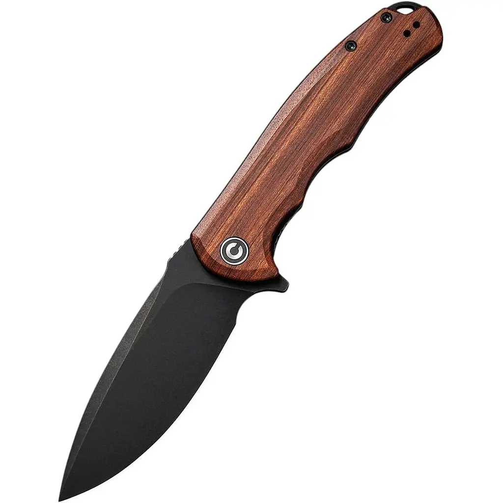 Praxis - дуже практичний і стильний складаний ніж від CIVIVI. Має плавні форми, а дизайн максимально зручний. Процес розриття здійснюється за допомогою фліпера, хід леза плавний та приємний.Лезо виготовлено з 9Cr18MoV, що є прекрасним варіантом для ножів, що використовуються щоденно. Сталь має гарні характеристики. Цей метал добре протидіє корозії, характеризується гарною зносостійкістю. За властивостями така сталь максимально близька до 420HC, твердість загартовування - до 58 HRC. Лезо форми Drop Point з матовим покриттям BlackWash, завдяки якому додається стильність дизайну. Також лезо додатково захищене від пошкоджень.Ручка виготовлена з деревини Гвібурції- це цінна екзотична африканська порода. Відрізняється поміж інших порід екзотичних дерев, перш за все, різноманітністю текстури. В структурі виділяються річні кільця, краса текстури є наслідком частої зміни напрямку зростання волокон. Цей вид деревини зустрічається із найрізноманітнішими малюнками фактури деревини. Ручка, виконана з цього дерева, довговічна, стійка до вологи, ультрафіолету та впливу комах.Цей складаний ніж оснащений кліпсою глибокої посадки для кріплення на кишеню.Особливості:якісне лезо з чорним покриттям, що маскує сліди щоденного використання;зручний механізм відкриття за допомогою фліпера;ручка з покриттям з дерева Cuibourtia з чорними вкладками з нержавіючої сталі;кліпса для комфортного носіння в кишені.