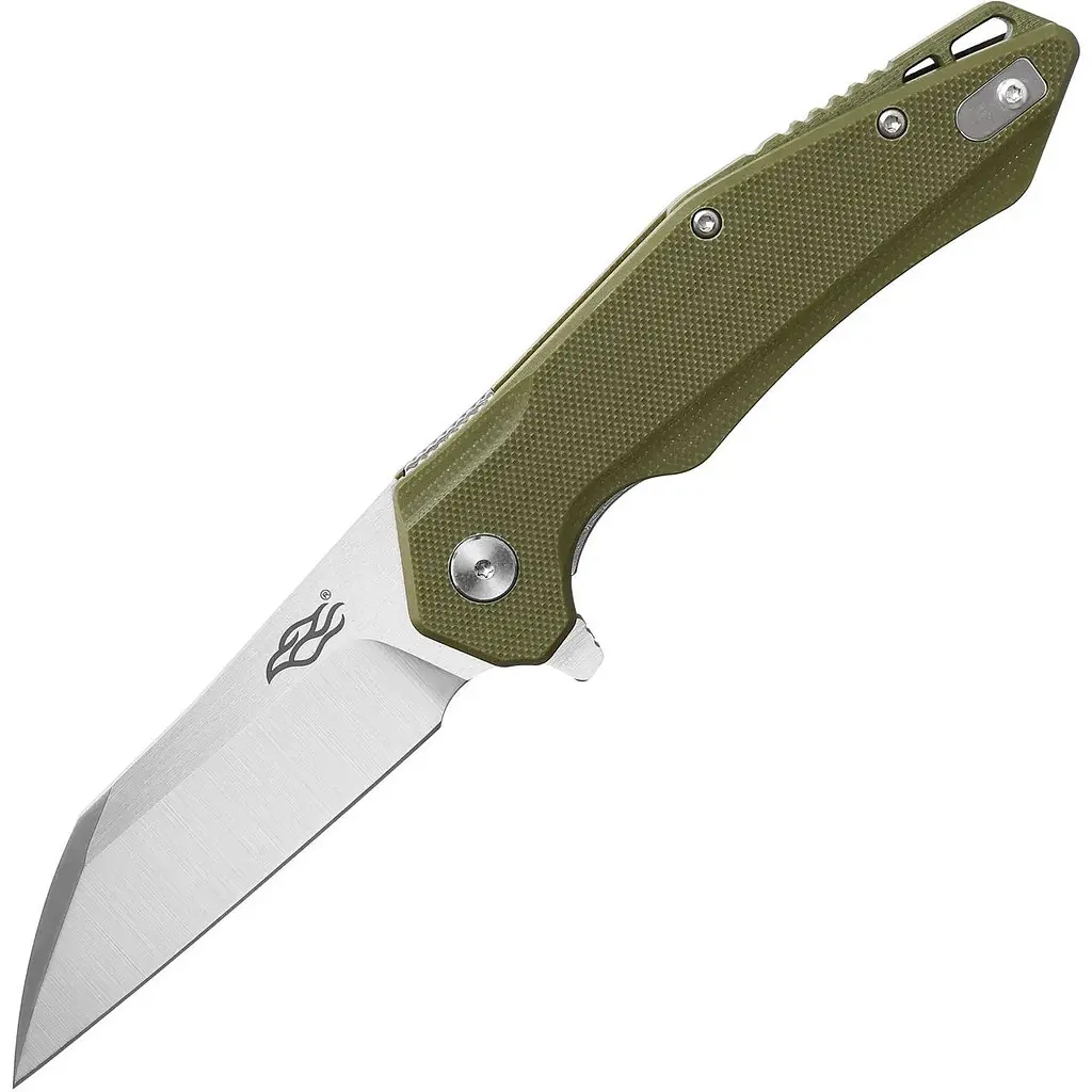 Довжина клинка цілком достатня, щоб з його допомогою було зручно виконувати всі основними різновиди робіт. Вона становить 86 мм. При цьому більшу міцність лезу гарантує товщина по обуху, рівна 3 мм. Форма клинка незвичайна для бренду Firebird - це Wharncliffe. Для такої форми характерна абсолютно пряма ріжуча кромка, наявність фальшлеза на обуху, а також гостро заточений кінчик леза. Також необхідно сказати, що поверхня ножа відшліфована методом сатинування, за рахунок чого поверхня стали нагадує атлас, на якому видно безліч ледве помітних рисок. Такі ножі менше блікують, а невеликі подряпини на їх поверхні залишаються непомітними.