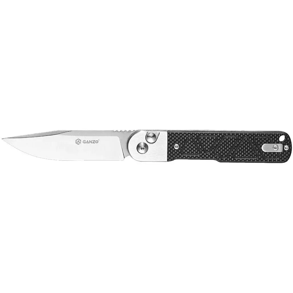 Матеріал клинка - сталь 9CR14. яка рідко зустрічається у складаних інструментах Ganzo. Це нержавіюча марка з високим вмістом хрому та допоміжними легувальними елементами у вигляді молібдену та ванадію, що знижують крихкість та підвищують щільність металу. Твердість сталі дорівнює еталонним 59 HRC, тому клинок ефективно справляється з різанням матеріалів різної щільності.
