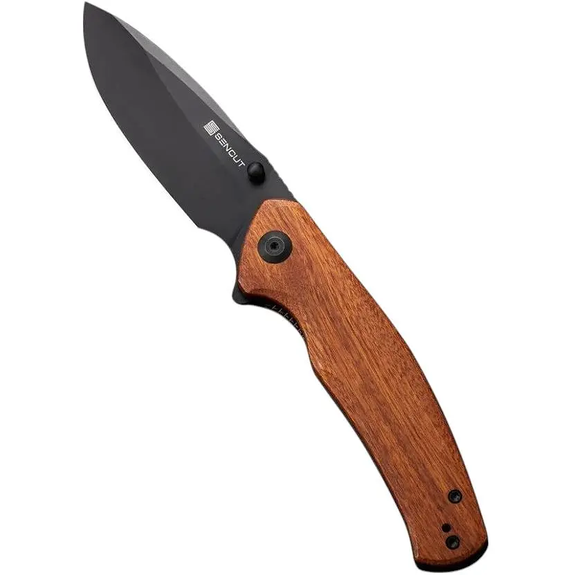 Ніж Slashkin від Sencut має три основні риси, які цінуються в складаних EDC інструментах: універсальність, ергономіка та зручність в транспортуванні, що забезпечує двопозиційна кліпса глибокої посадки. При цьому модель не позбавлена естетичної складової - чорне покриття клинка довжиною 88.3 мм надає ножу брутального вигляду, а накладки з натуральної деревини роблять дизайн унікальним.Клинок drop point краплеподібної форми підходить для виконання різних завдань, в яких потрібне рівне різання або точкові проколи. Пряма різальна крайка легко заточується, а чорний колір металу приховує відбитки пальців.Матеріал клинка - сталь D2. що широко застосовується у виробництві інструментів різного призначення. Збалансований склад сплаву, в якому крім інших елементів міститься ±12% хрому та ±1.5% вуглецю, робить метал корозійностійким, міцним і водночас простим у заточуванні. Після загартування показник твердості сталі досягає 59-61 HRC.У конструкції використовується замок liner lock. Ніж характеризується практично миттєвим відкриттям завдяки керамічному кульковальнику. Клинок можна витягти двома способами: за допомогою плавця (фліпера) або двостороннього шпеника.Накладки на руківʼї виготовлені з деревини гібуртії. Її гладко відполірована поверхня з плавно вигнутими краями забезпечує комфортне утримання. Крім того, деревина не вбирає вологу та неприємні запахи завдяки спеціальній обробці.Матеріал дрібних деталей, у тому числі шпеника та затискача на кишеню, - нержавіюча сталь із темним покриттям у тон клинку. Загальна вага конструкції складає 108.8 грамів.Характеристики:кишеньковий EDC ніж від Sencut;клинок виготовлений зі сталі D2 із чорним покриттям;твердість клинка - 59-61 HRC;форма клинка - drop point;лезо з прямим заточуванням;тип замку - liner lock;матеріал руківʼя - натуральна деревина;матеріал дрібних елементів - нержавіюча сталь;повна довжина - 210.3 мм;у складеному положенні довжина ножа дорівнює 122 мм;довжина клинка - 88.3 мм;товщина обуха - 3 мм;товщина руківʼя - 12 мм;вага - 108.8 г.