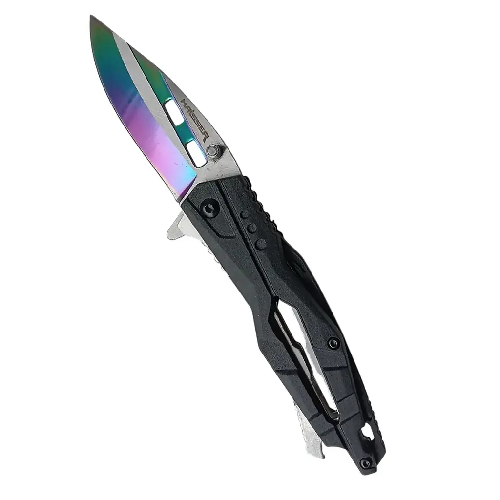 Туристичний складний ніж Haisser – це компактний і легкий інструмент із лезом із нержавіючої сталі 3Cr13, довжиною 78 мм, що забезпечує високу зносостійкість і міцність. Замок типу Liner Lock надійно фіксує лезо в робочому положенні, а вбудована відкривачка для пляшок додає практичності. Ручка з нейлону стійка до зносу та зручна в хваті. Загальна довжина в розкладеному вигляді становить 196 мм, а вага лише 105 г робить ніж ідеальним для носіння з собою.
