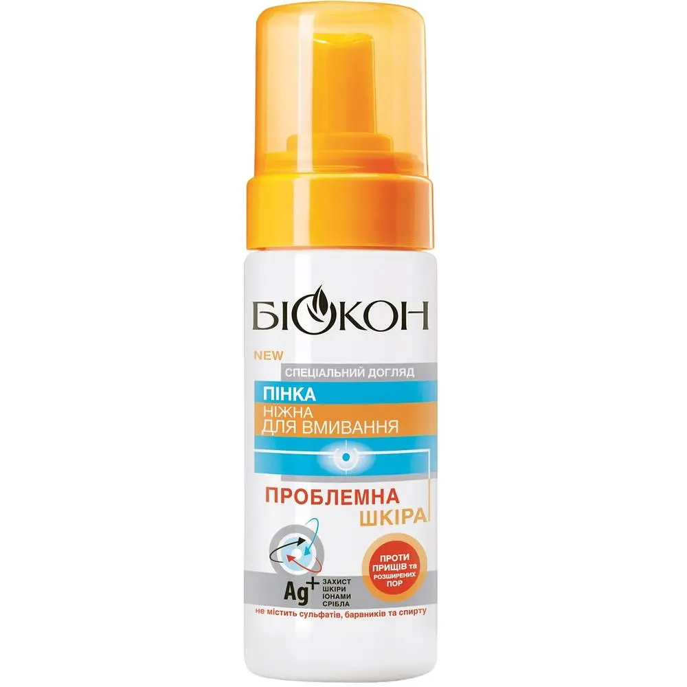 Ніжна пінка для вмивання Біокон Проблемна шкіра дбайливо видаляє забруднення та зайву жирність шкіри. Зменшує запалення та кількість прищів. Пінка ніжної консистенції чудово підходить для щоденного застосування.