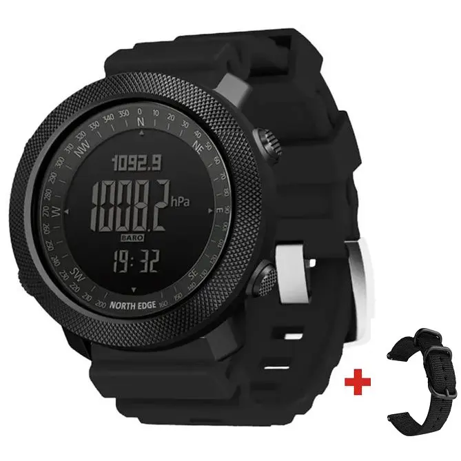 North Edge - це бренд тактичних годинників, які спеціально розроблені для військових, пілотів, моряків і т.д., які працюють в надскладних умовах. Ці годинники призначені для використання в екстремальних ситуаціях, де точність, надійність та функціональність є критичними.Годинники від бренду North Edge можуть витримувати ультрахолодні температури, а також мають в собі важливі функції, такі як компас, альтиметр, будильник та інші. Бренд North Edge має репутацію надійних і якісних годинників.В комплекті йде безкоштовно змінний тканевий ремінець чорного кольору та офіційна гарантія на 12 місяців.