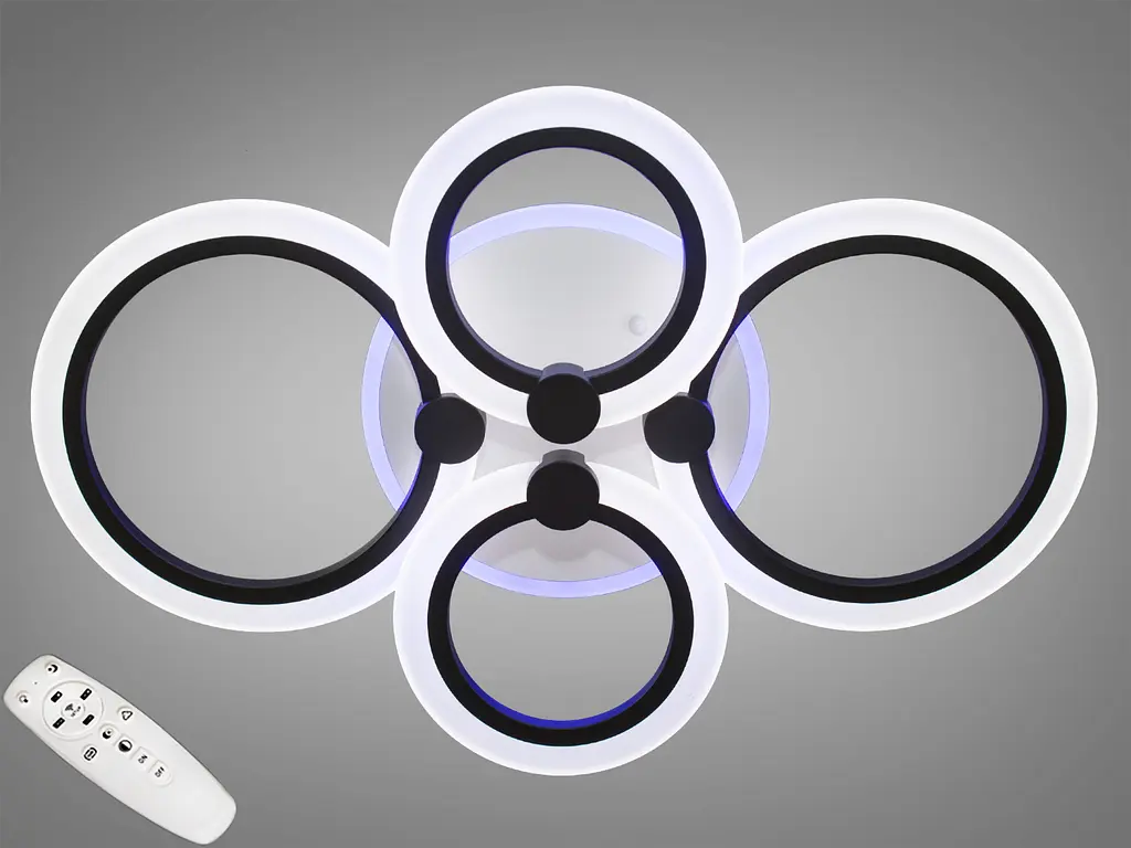Ця дизайнерська пристельова LED-люстра на пульті з діммером і підсвічуванням є чудовим прикладом мистецтва, втіленого в освітлювальній техніці. За допомогою своєї 80-ватної потужності і круглих акрилових розсіювачів в вигляді кілець різної величини, ця люстра м'яко балує приміщення рівномірним світлом, створюючи спокійний і заспокійливий простір, ідеальний для кімнат, де діти вчаться, грають або відпочивають.