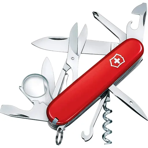 Швейцарський армійський ніж Victorinox Explorer ("Розвідник") є другим за популярністю ножем Victorinox великого розміру після Hunter ("Мисливець"). Якщо ви допитлива людина - цей ніж для вас! Ви зможете розглянути все, що завгодно за допомогою лупи, потім використовувати велику різноманітність інших інструментів для подальшого вивчення, ремонту, а також відпочинку. Завдяки цьому ножу будь-яка робота стане для вас задоволенням і для цього необхідно лише покласти ніж Victorinox Explorer в кишеню!